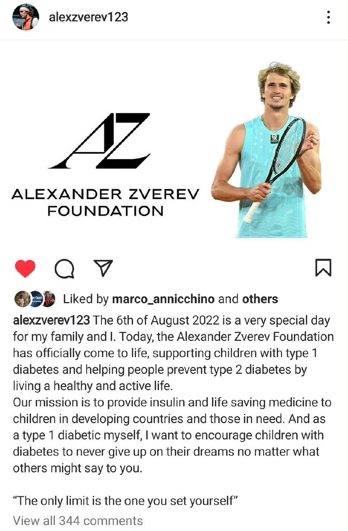 最近,德国网球名将兹维列夫在采访中娓娓道来作为一名糖尿病患者在他的网球职业生涯中的心路历程:“我向医生们证明,即使患有糖尿病,也可以成为精英运动员。我母亲曾被告知我不可能做到这一点。”