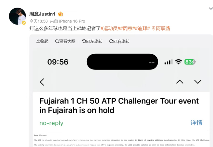 非常不幸的是,在ATP这41人之外,还真有中国球员被困在了阿联酋,他们就是周意和孙发京。