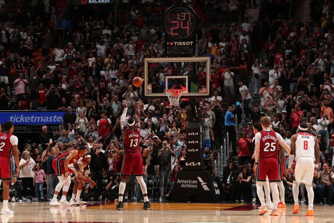 首节比赛,阿德巴约就已是火力全开的状态,单节16中10,三分8中5,罚球7中6,爆砍31分3篮板1抢断1封盖。单节30分以上的进账,让阿德巴约成为了热火队史第一人,同时也创造了自NBA有单节数据统计以来的历史第五高分(克莱37分、乐福34分、安东尼33分、唐斯32分)。