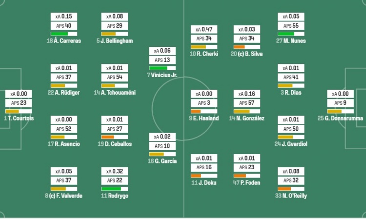 皇马对曼城比赛归纳:各项高阶数据对比