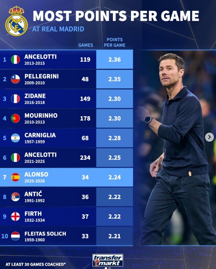 这里没有时间等待体系成熟,也没有空间容他“实验”。 他试图强行改造,却未能像在勒沃库森那样,用胜利快速赢得信任,反而加剧了对抗。其执教期间的场均积分仅在同期西甲教练中位列第七,便是明证。